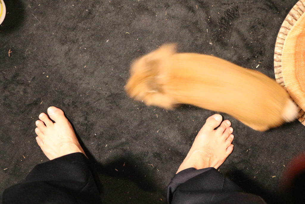 パパの足の周りをまわって……(かえで達はしません……)。
