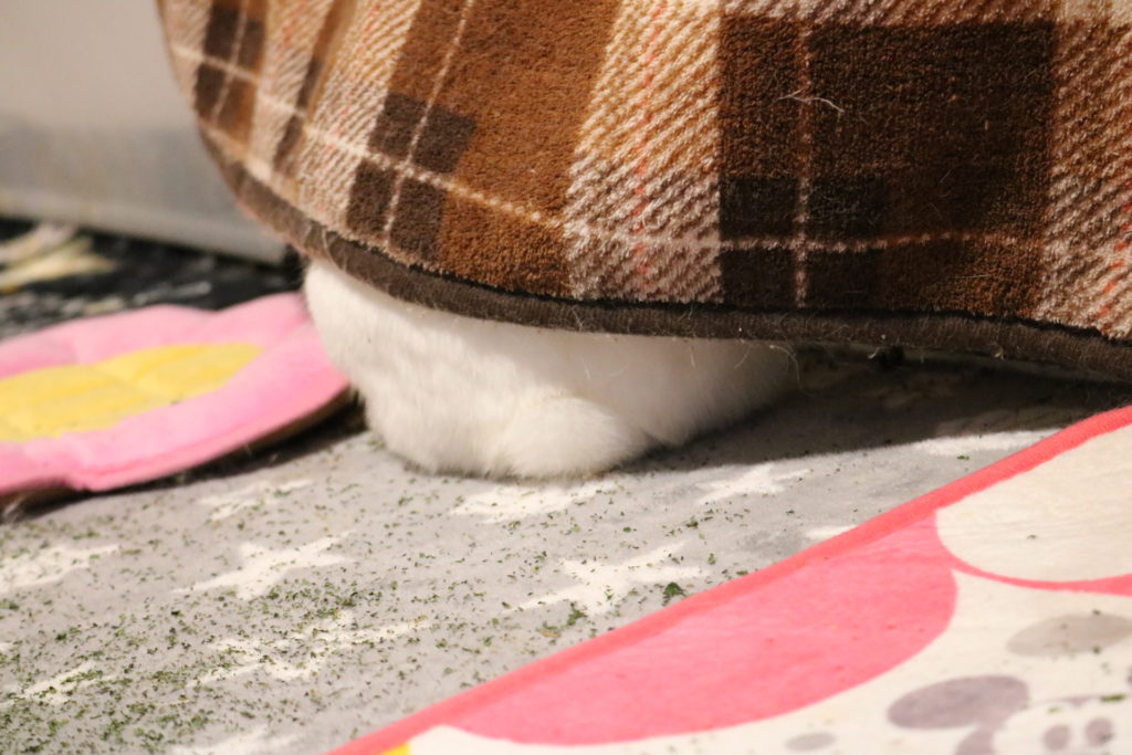 今日は布の中に入って遊んでいます。